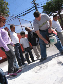 Mentoring artist Tim Armstrong demonstrates flour-based artwork |